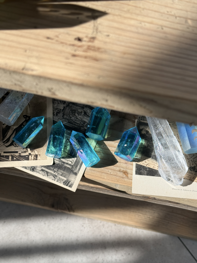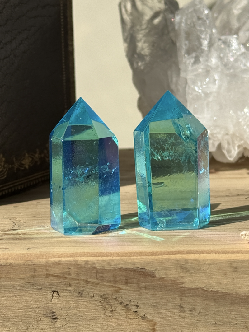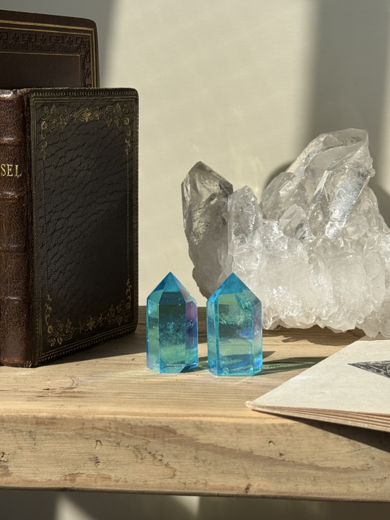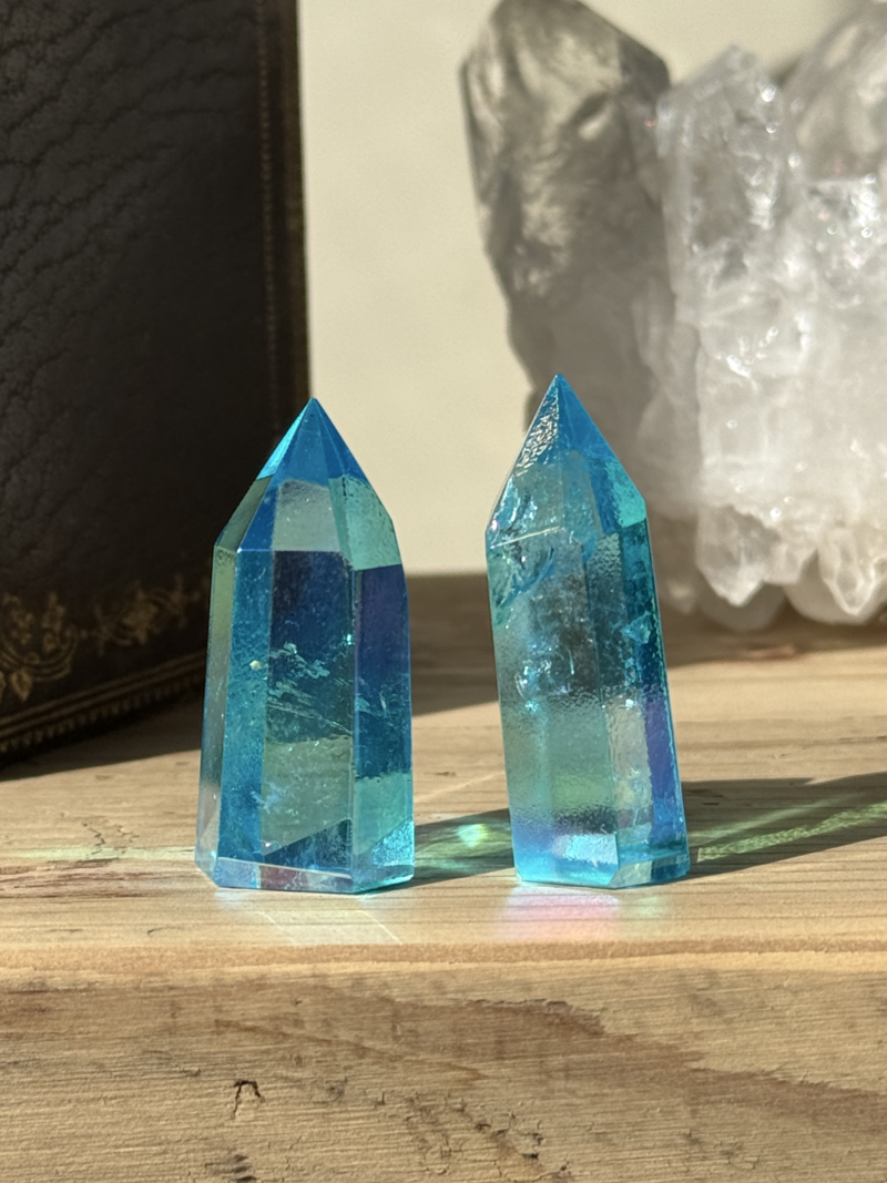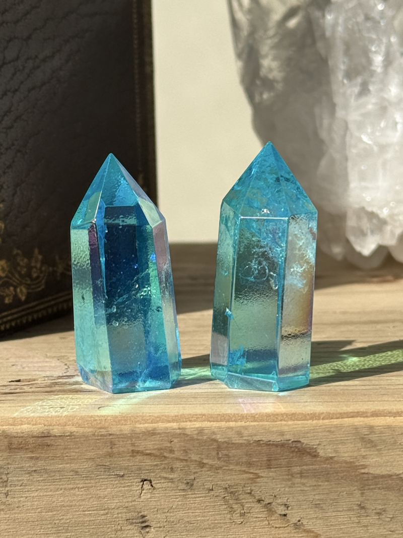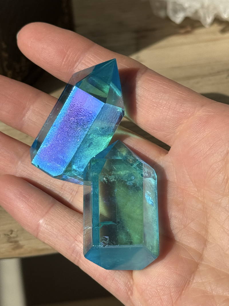 透明な水晶の表面に金属を蒸着させることで生まれる、