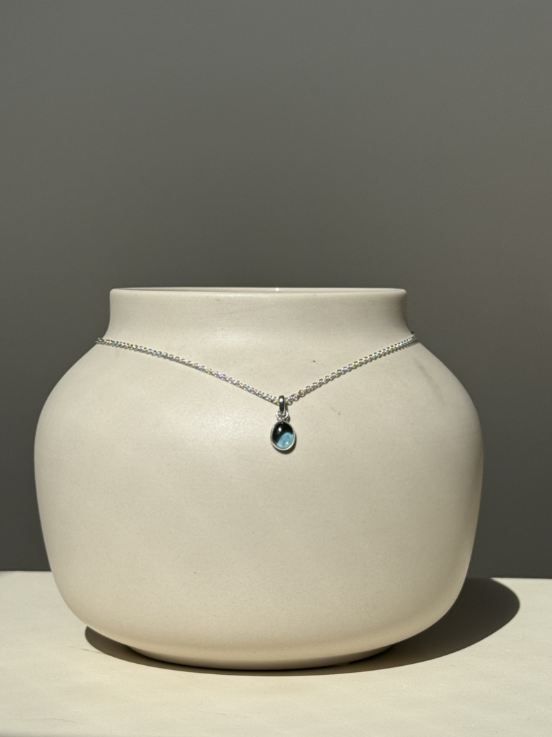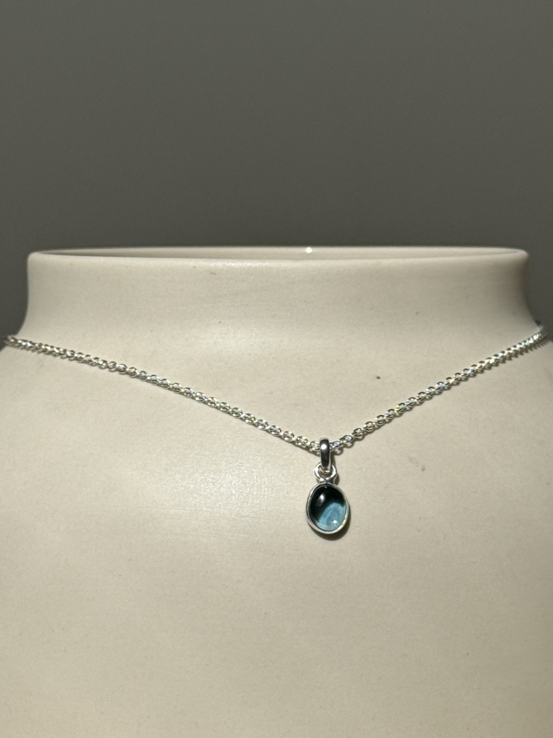 シンプルなSILVER925製のペンダント枠が、ロンドンブルートパーズの深い青色と透明感を引き立て、日常使いからフォーマルな装いまで幅広くお楽しみいただけます。