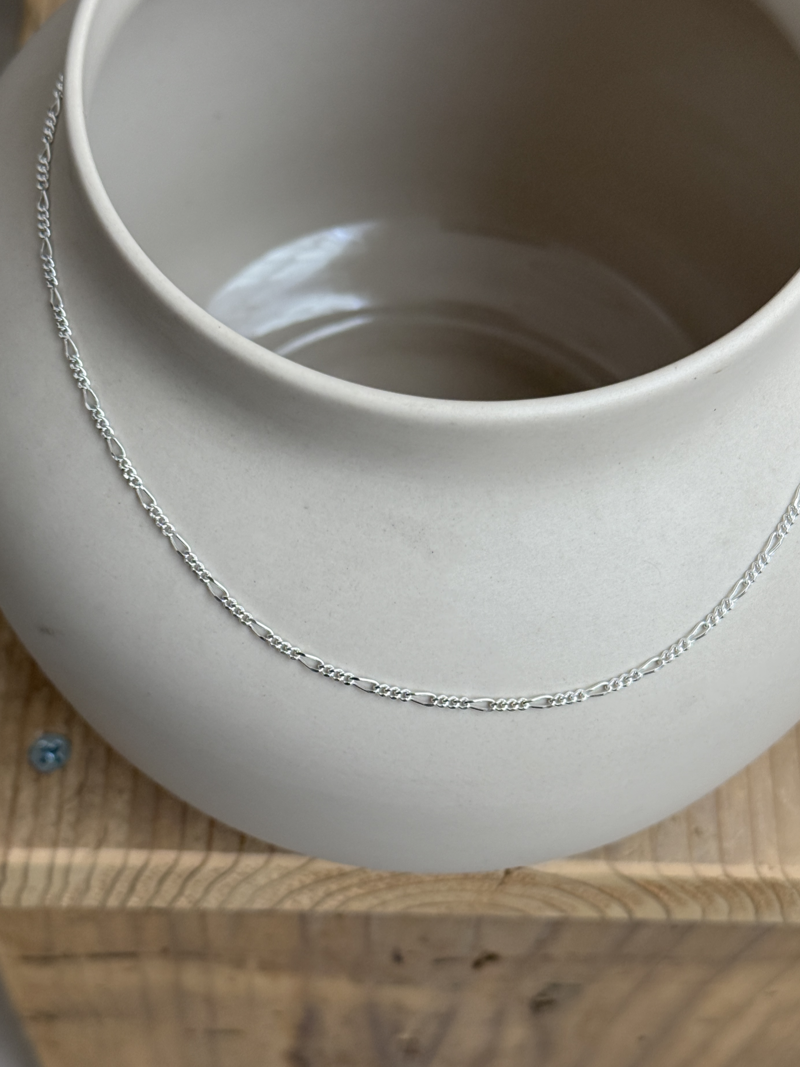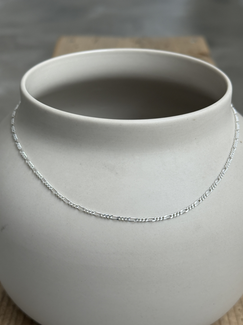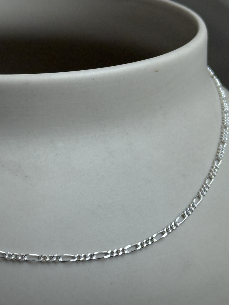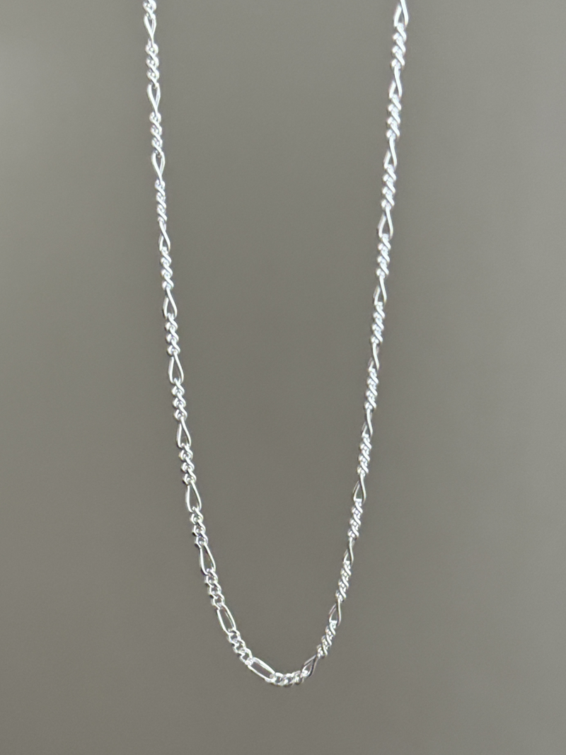 細身で繊細な印象を与える、幅1.8mmのフィガロチェーンネックレス。