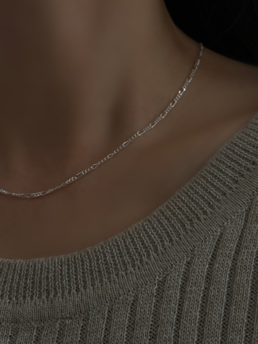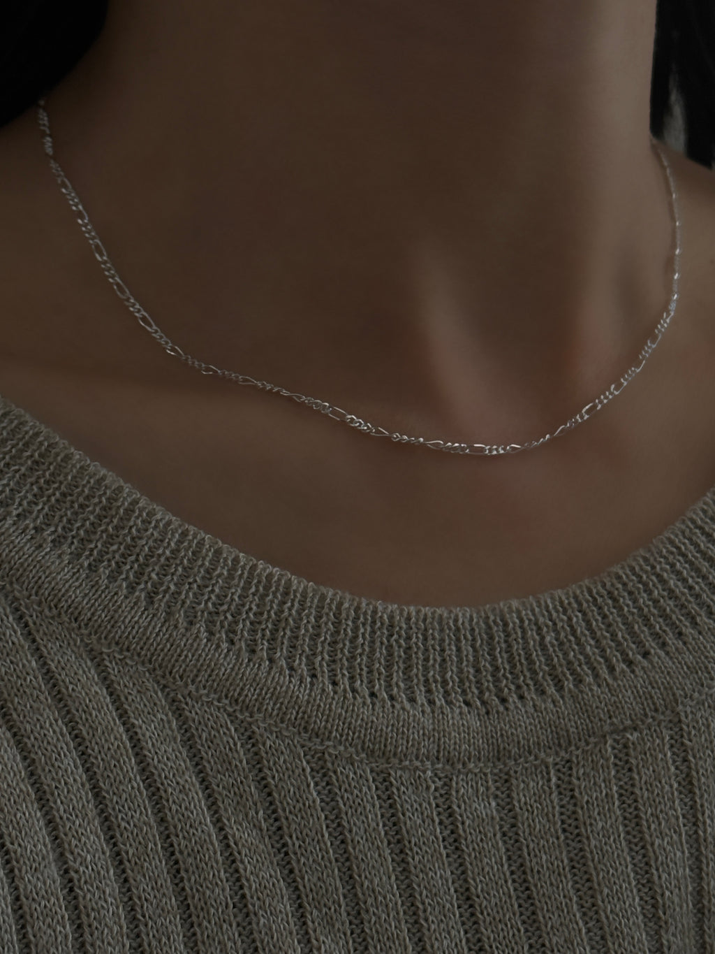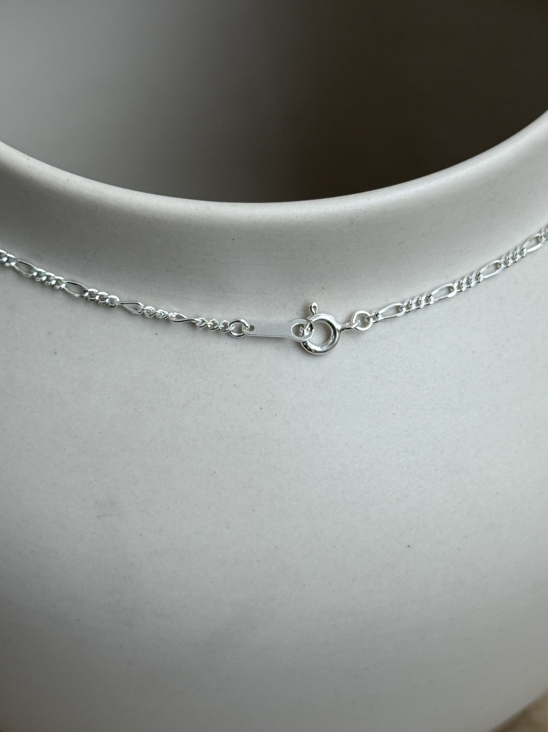 細身で繊細な印象を与える、幅1.8mmのフィガロチェーンネックレス。