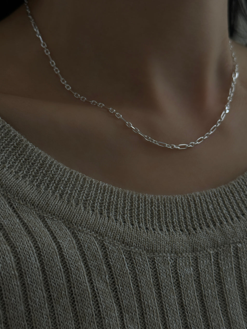 カジュアルからきれいめスタイルまで幅広く活躍する、さりげなく個性が光るチェーンです。
