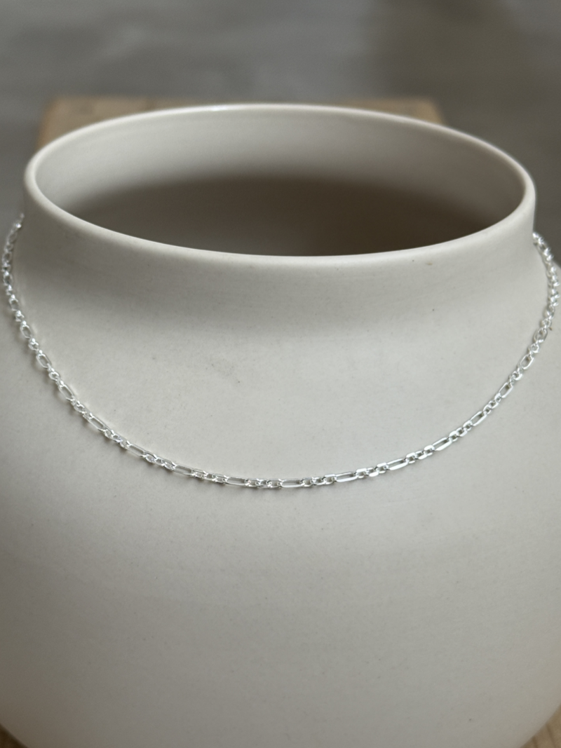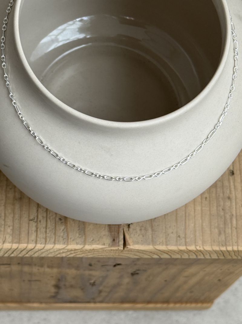 細長いコマが連なる、洗練された印象の2.3mm幅チェーンネックレス。
