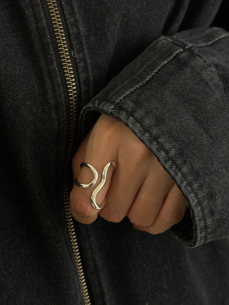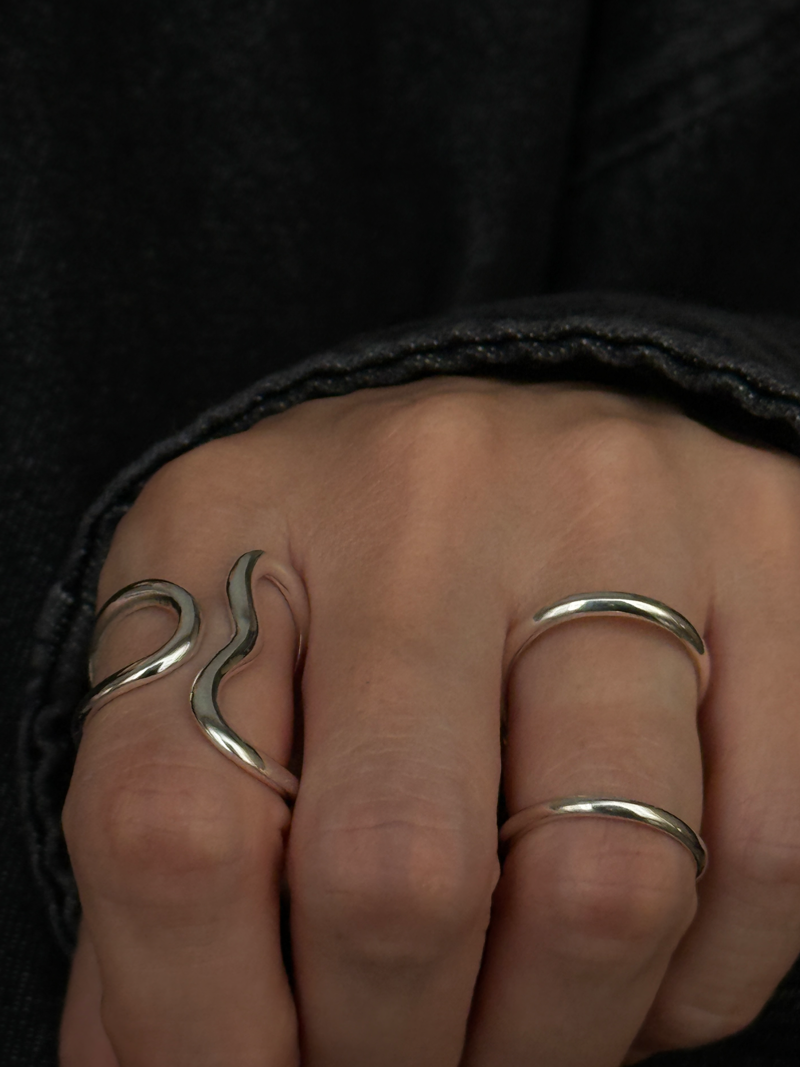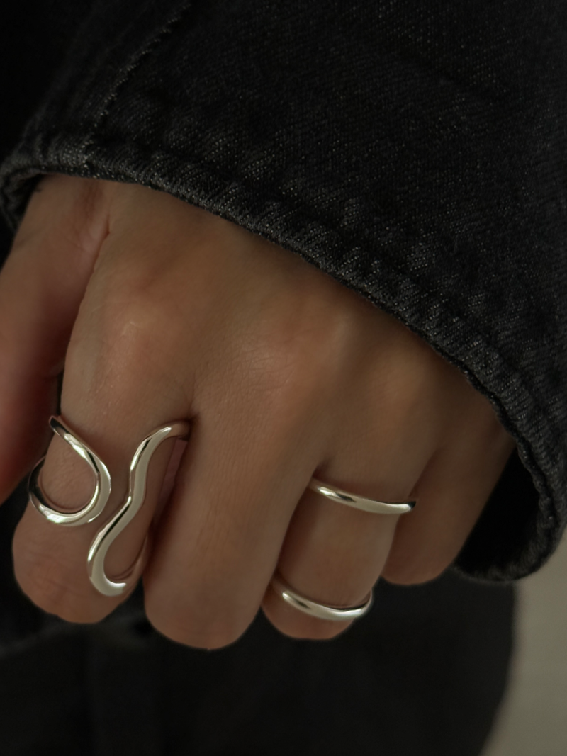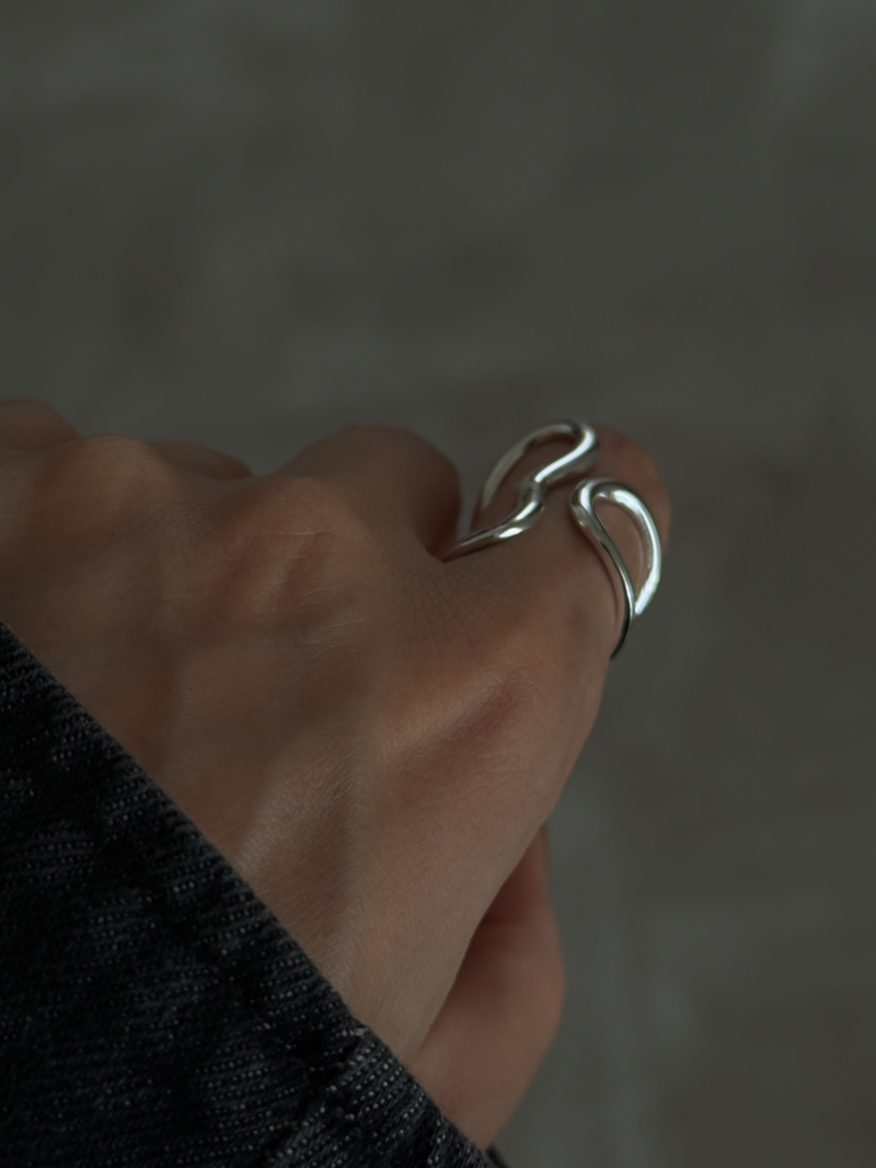 流れるような曲線が指を長く、美しく見せてくれる立体デザイン。
