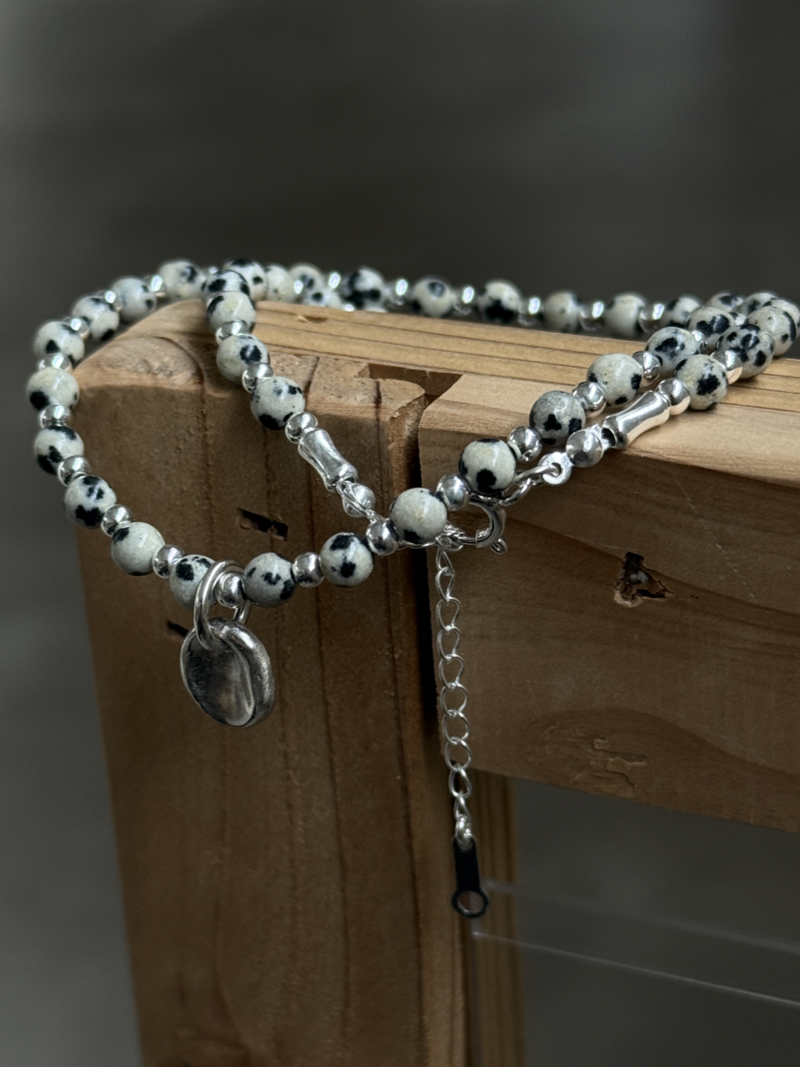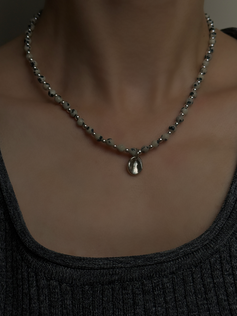 ダルメシアンジャスパー チョーカーネックレス 36cm〜41cm(ハンドメイド)