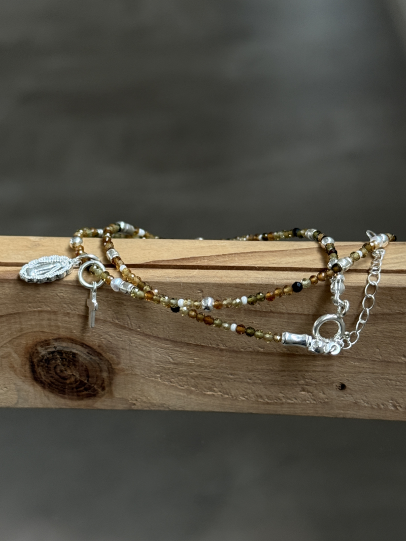 トルマリンは「虹の宝石」と呼ばれるほど多彩な色を持つ宝石ですが、その中でもブラウンやグリーンの色味を帯びた石は、落ち着きと自然の豊かさを感じさせる特別な存在です。ブラウン系のトルマリンは大地を思わせる温かみのある色合いが特徴で、穏やかさや安心感をもたらし、身につける人に安定と落ち着きを与えるといわれています。その渋みのある輝きは、華やかさよりも深みのある美しさを好む方に愛され、大人のジュエリーとして高い人気を誇っています。