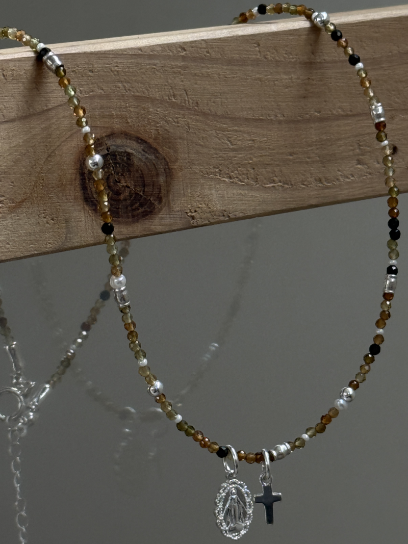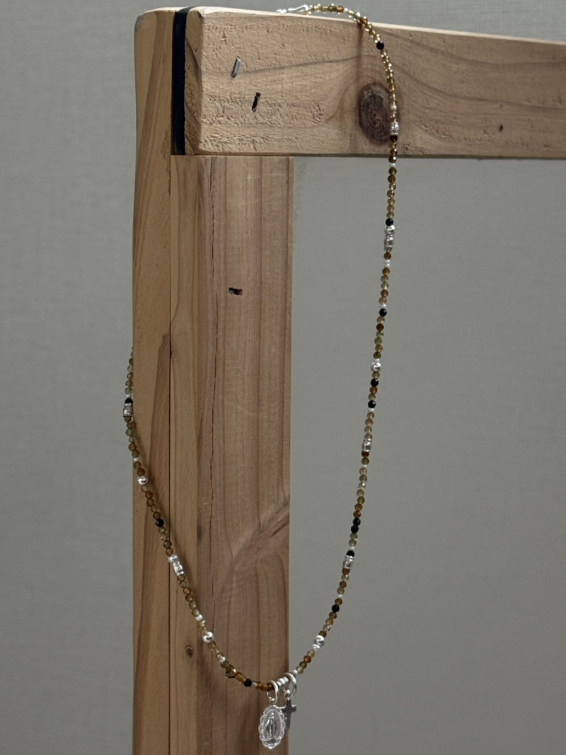 Silver925 ×10月誕生石 トルマリン ミニチャーム ネックレス(ハンドメイド)