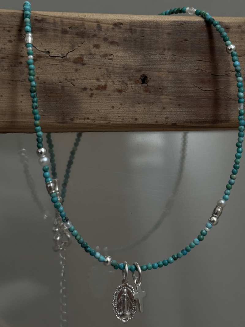 Silver925 ×12月誕生石 トルコ石(ターコイズ) ミニチャーム ネックレス(ハンドメイド)