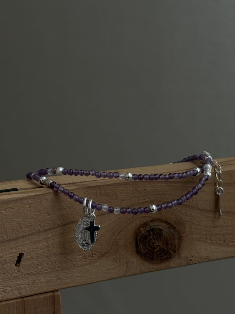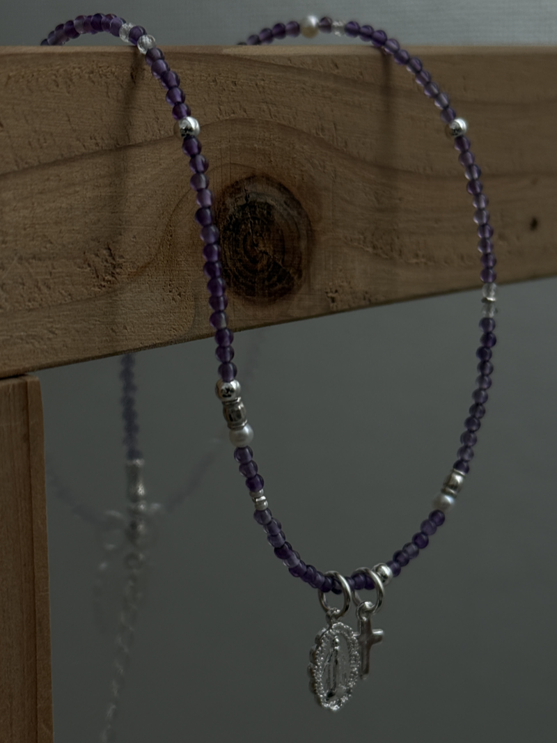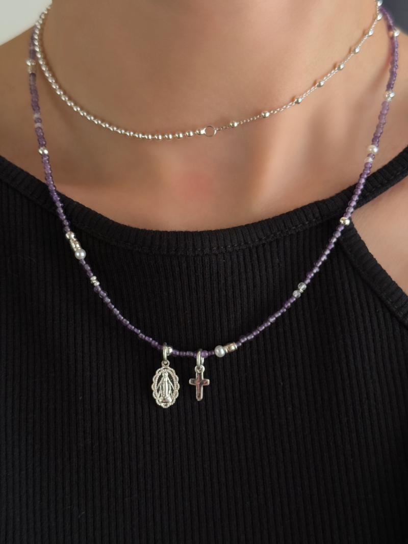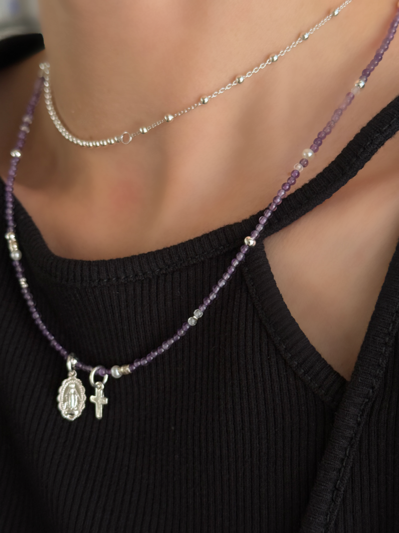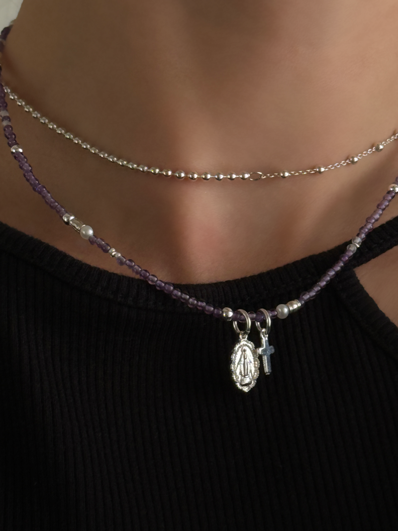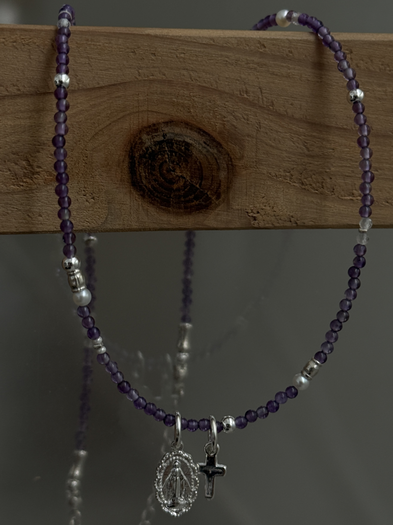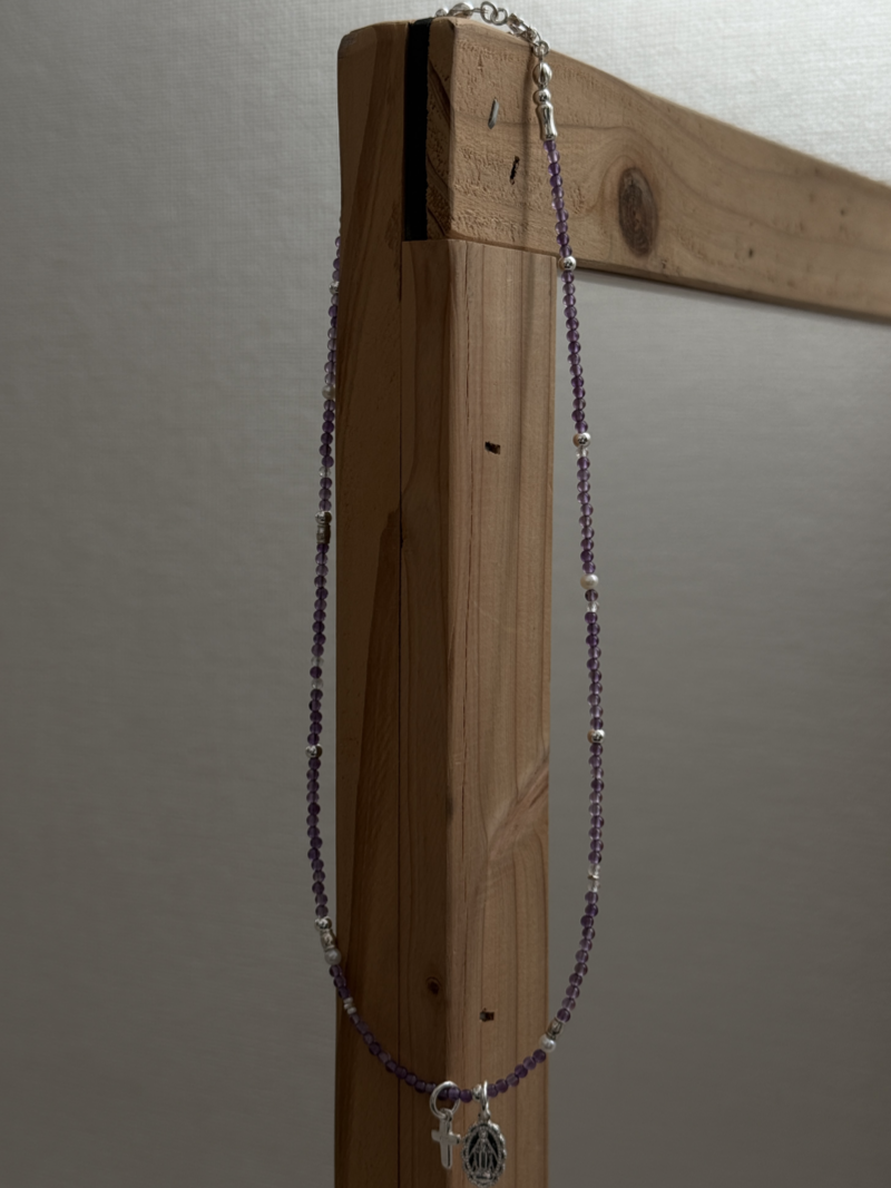 Silver925 ×2月誕生石 アメジスト ミニチャーム ネックレス(ハンドメイド)