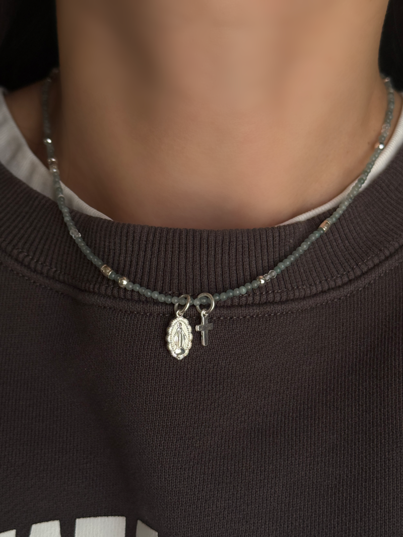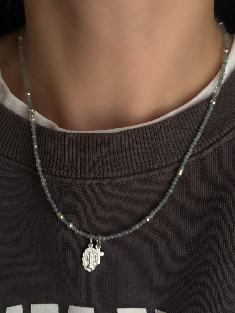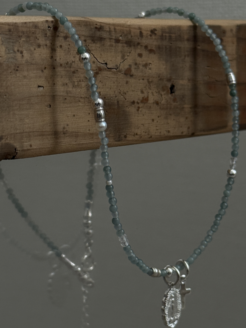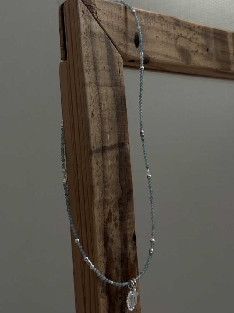 Silver925 ×5月誕生石 ジェイダイト ミニチャーム ネックレス(ハンドメイド)