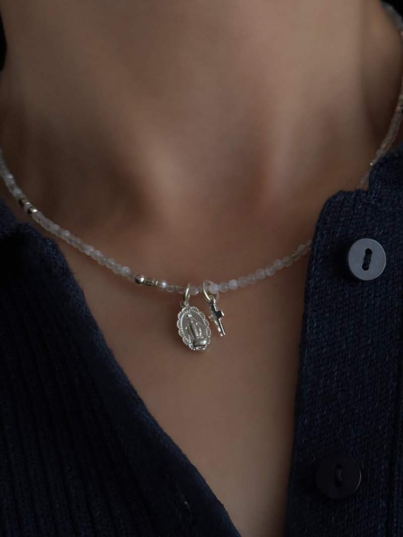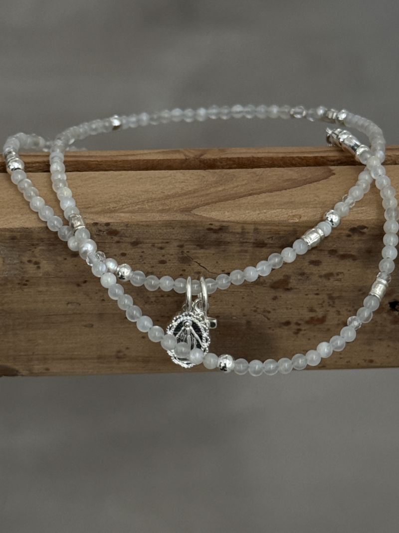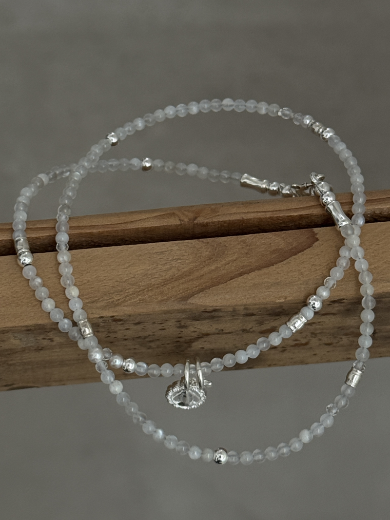 Silver925 ×6月誕生石 ムーンストーン ミニチャーム ネックレス(ハンドメイド)