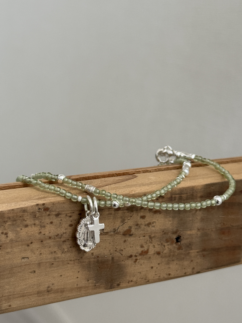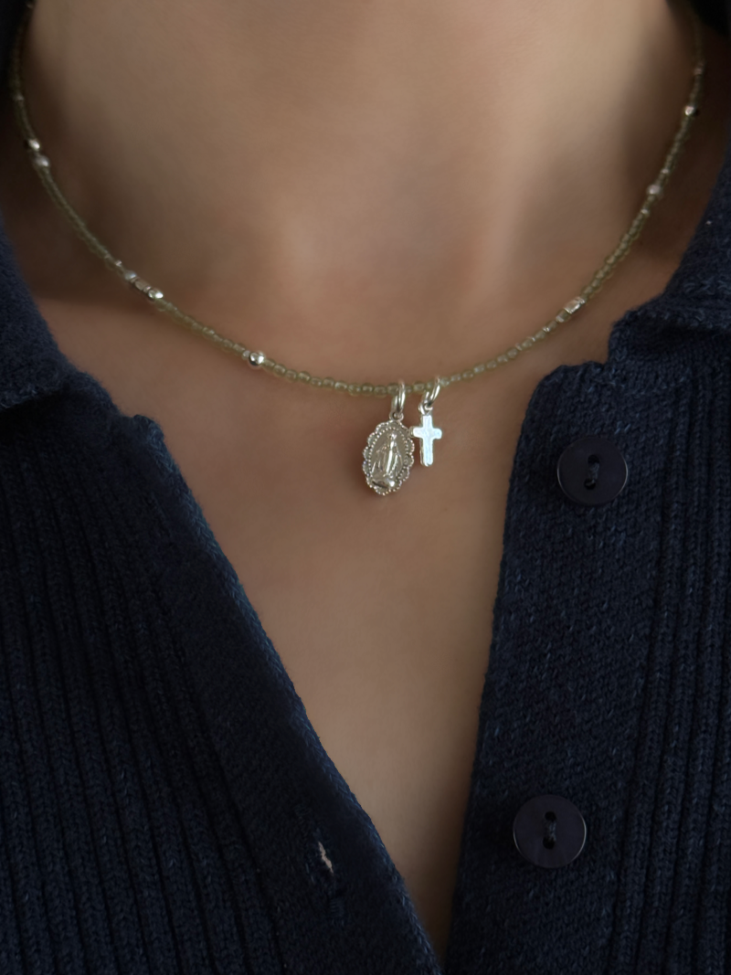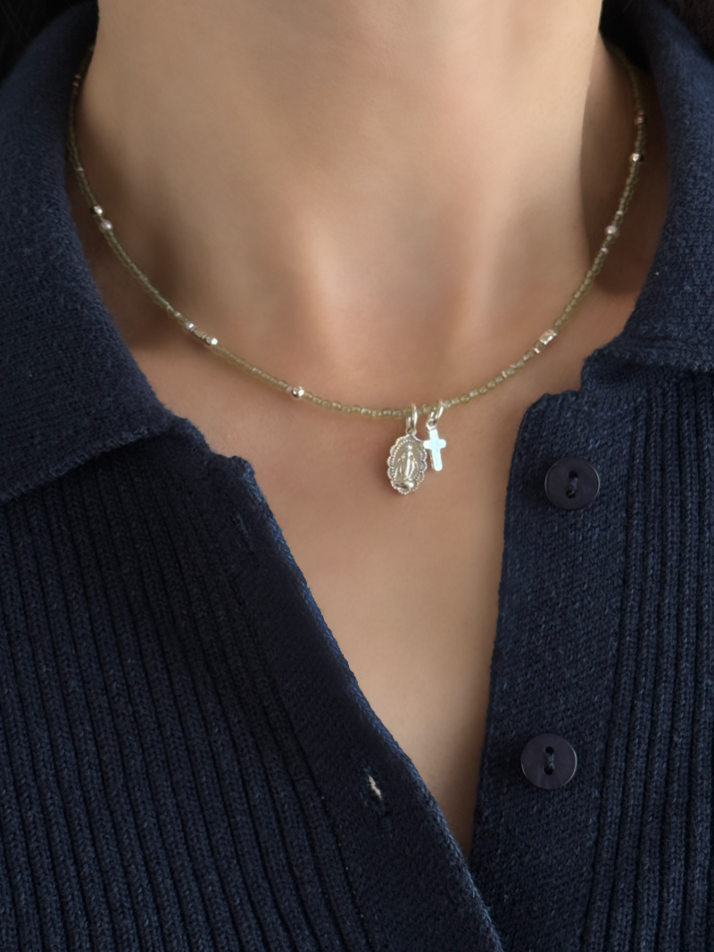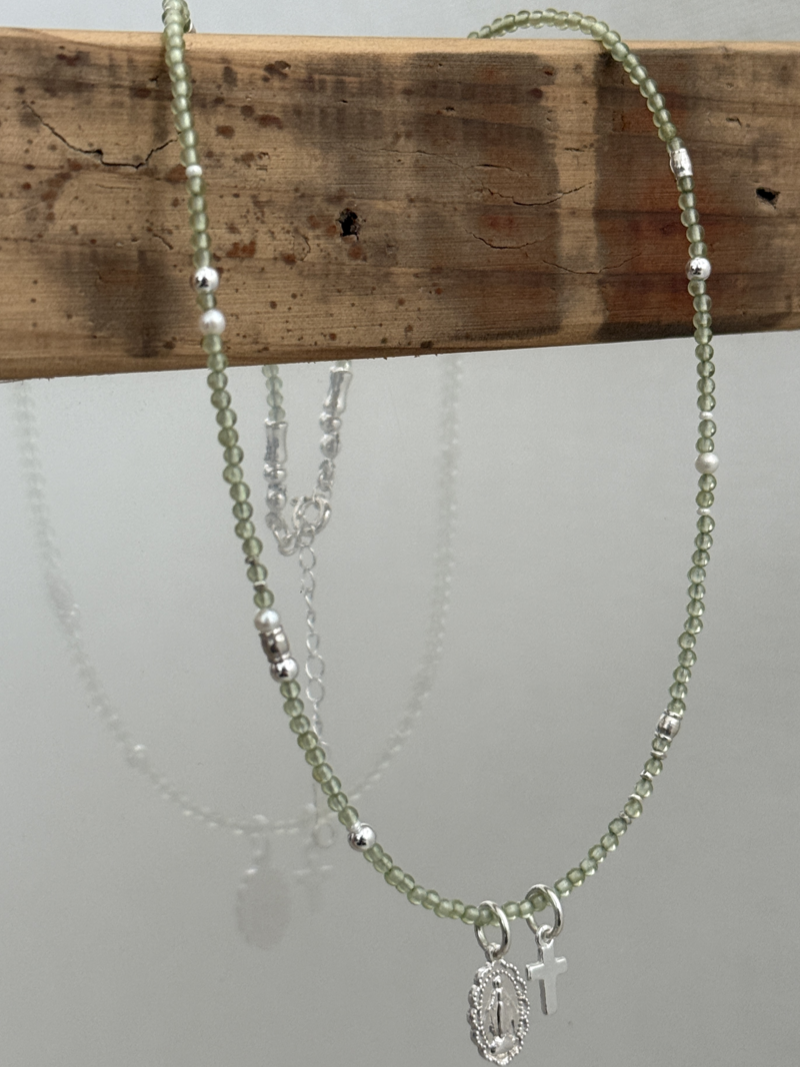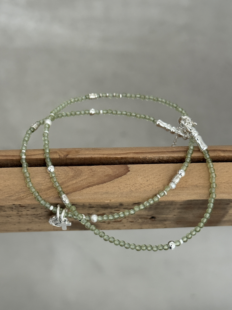 Silver925 ×8月誕生石 ペリドット ミニチャーム ネックレス(ハンドメイド)