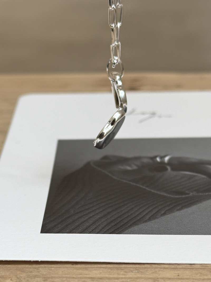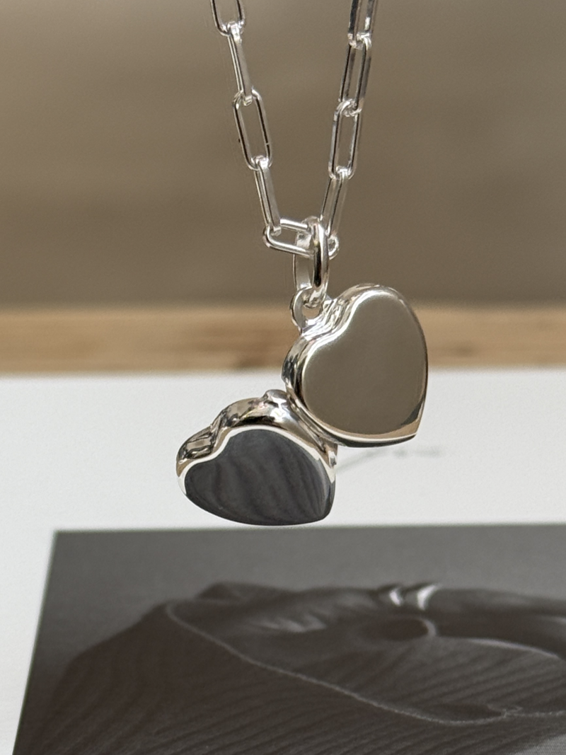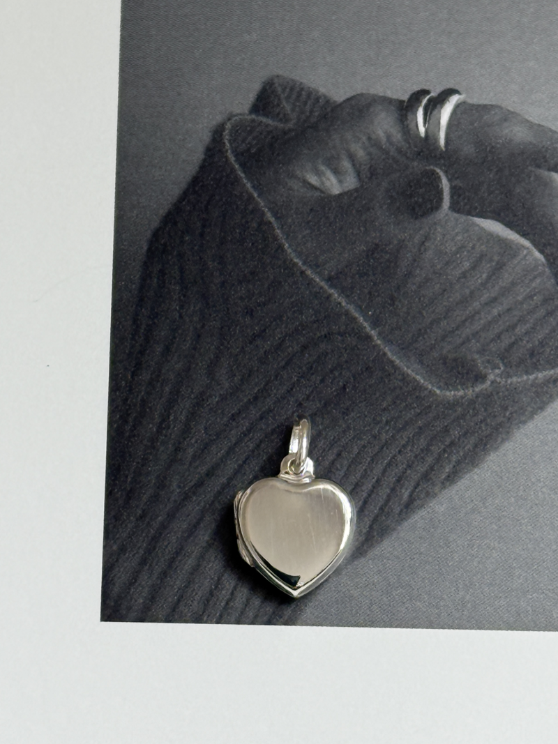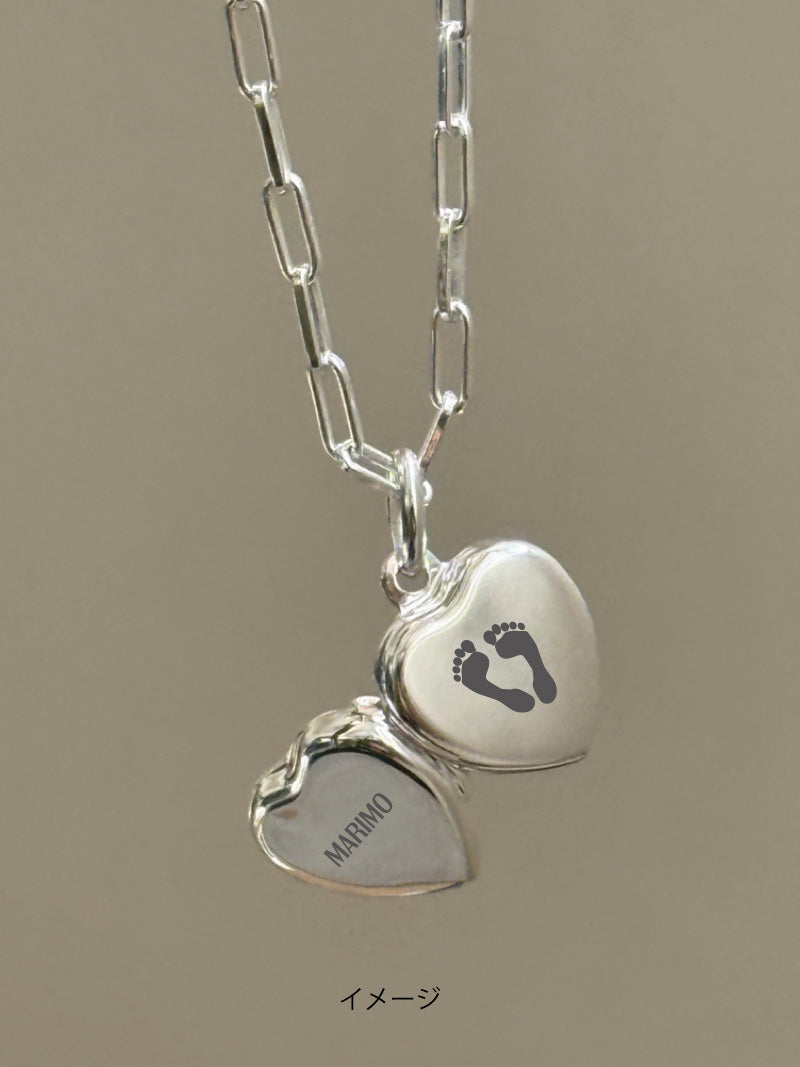 約15×13×5mmの程よいサイズ感のハート型のシルバー925製ロケットペンダントトップ。表面または、裏面に足型や手形、お名前や、日付、メッセージを刻印いたします。