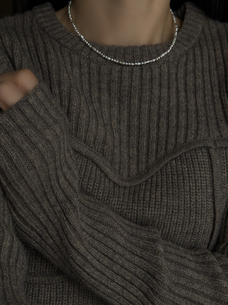 短めのチョーカーラインが首元をすっきりと見せ、デコルテを美しく引き立てます。シンプルで洗練された佇まいは、幅広いスタイルに合わせて楽しめます。