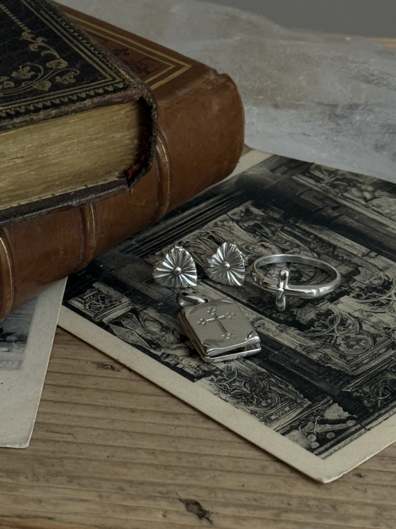 ・シルバーはとても柔らかい素材のため無理に力を加えたり、落下させてしまうと破損の恐れがございます。お取り扱い、お手入れにはお気をつけくださいませ。