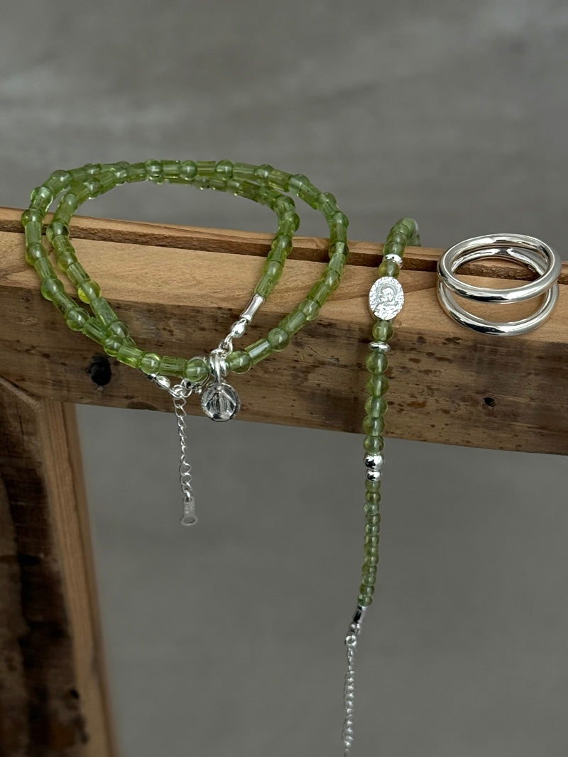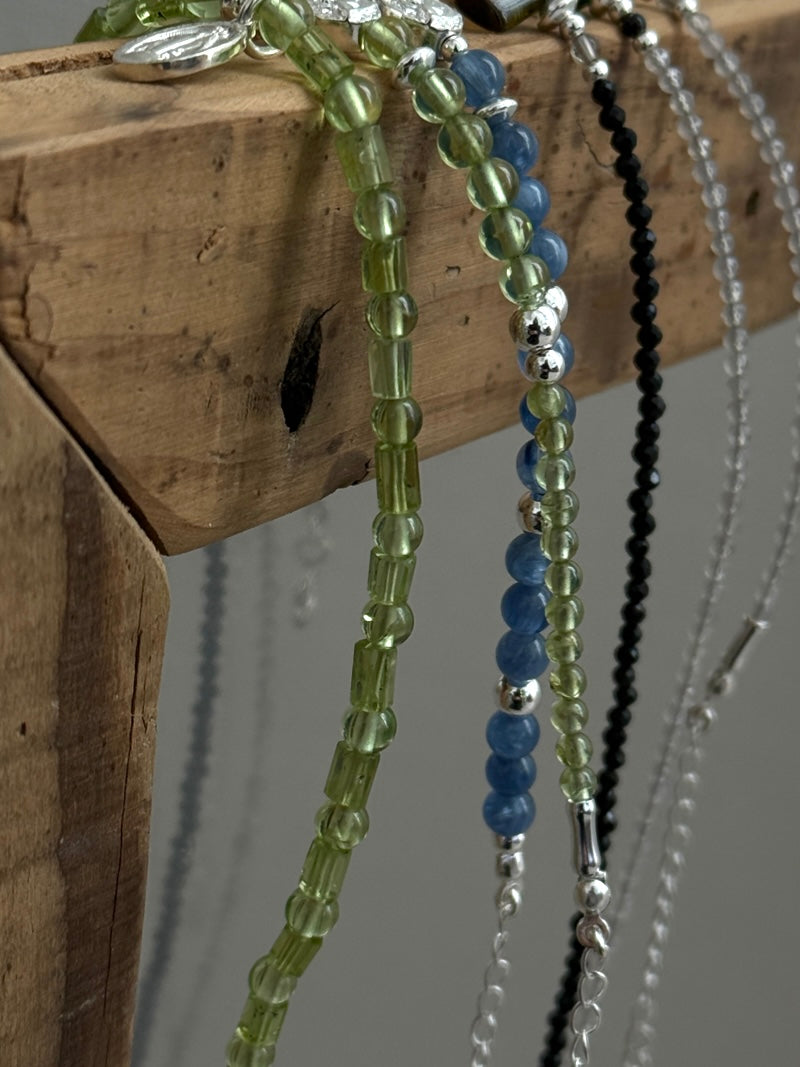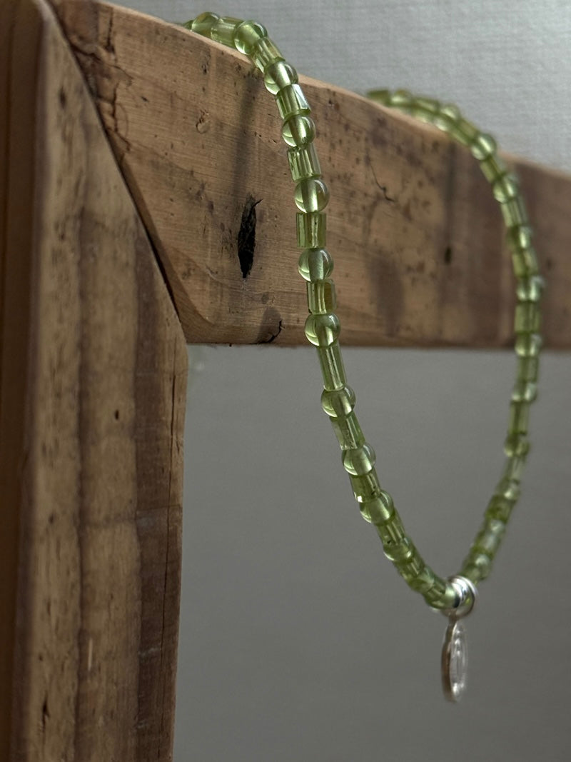瑞々しい黄緑色が美しい、4mm玉とチューブ型のペリドットを組み合わせたネックレス。