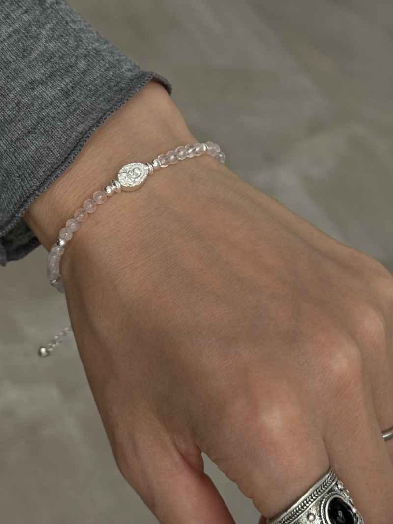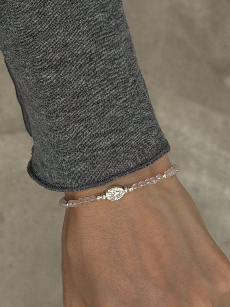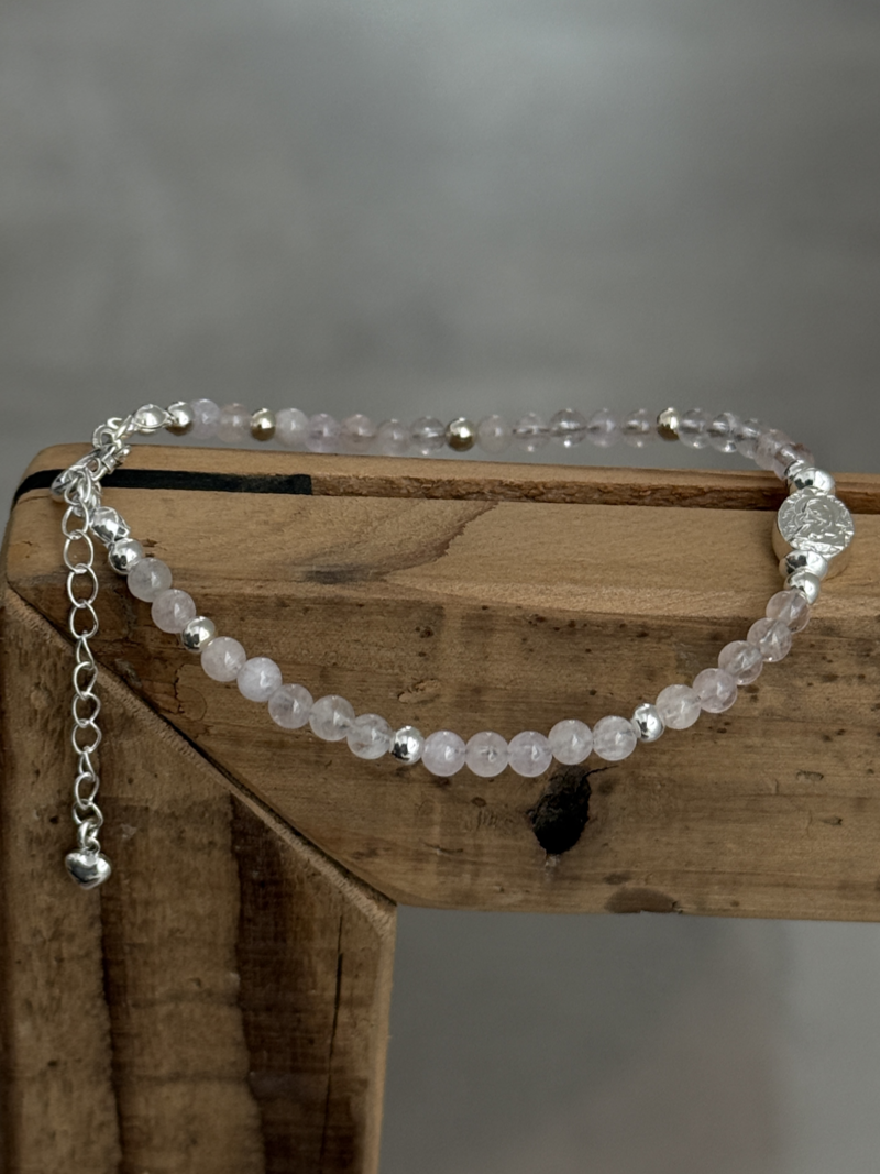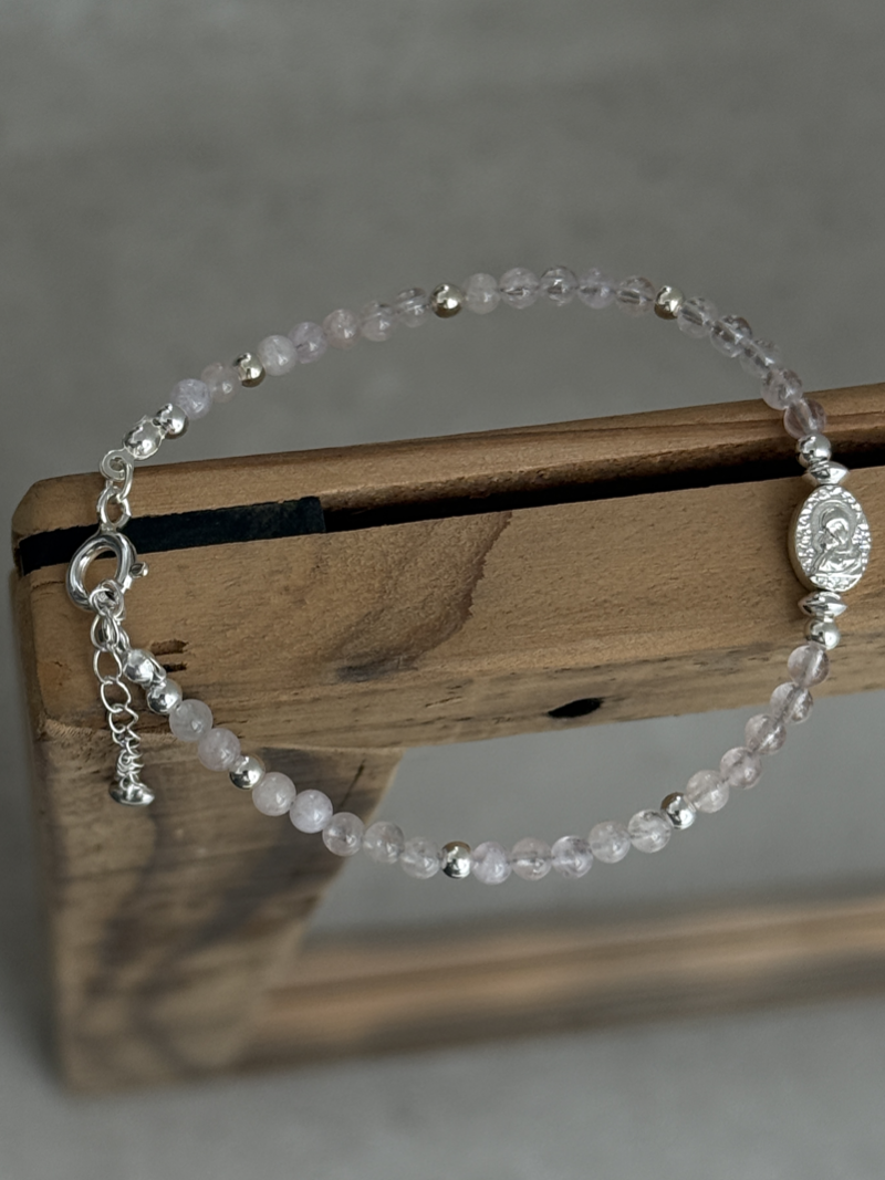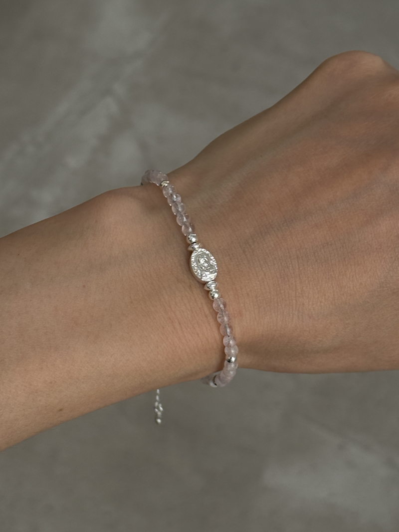 Silver925 ×4月誕生石 モルガナイト メダイブレスレット(ハンドメイド)