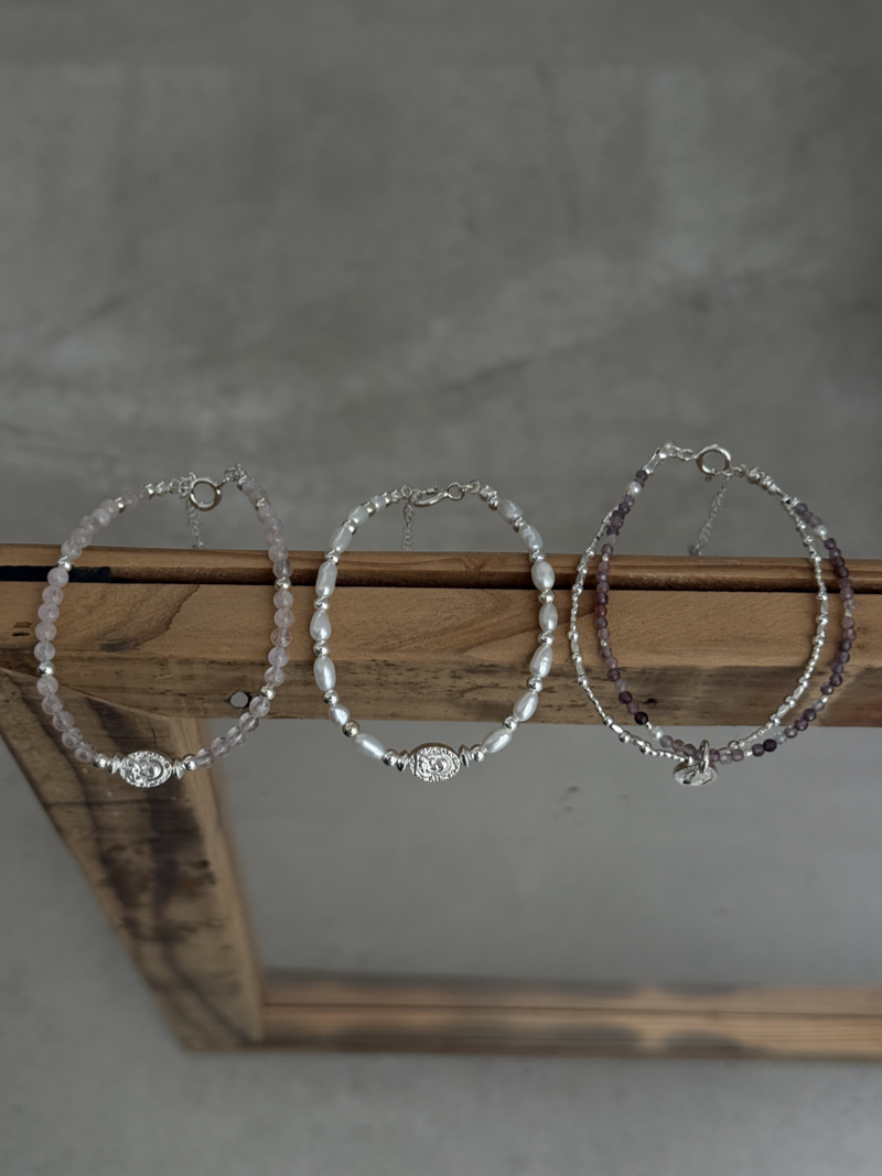 Silver925 ×6月誕生石 バロックパール メダイブレスレット(ハンドメイド)