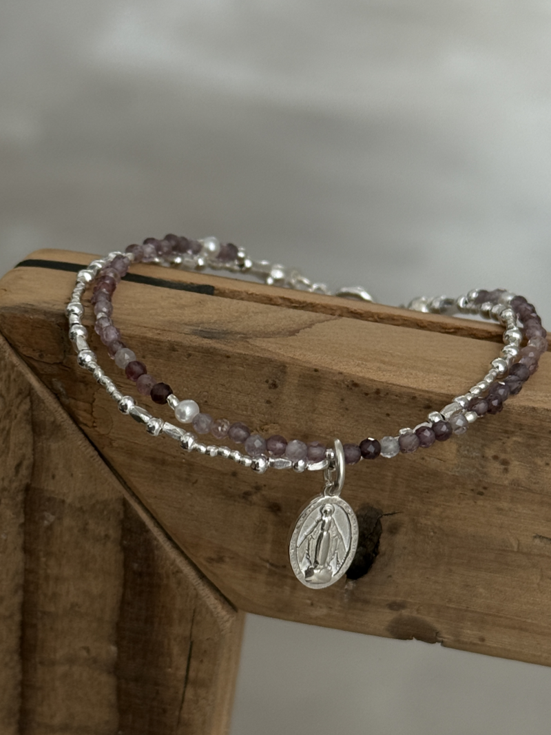 Silver925 ×8月誕生石 パープルスピネル2連 メダイブレスレット(ハンドメイド)