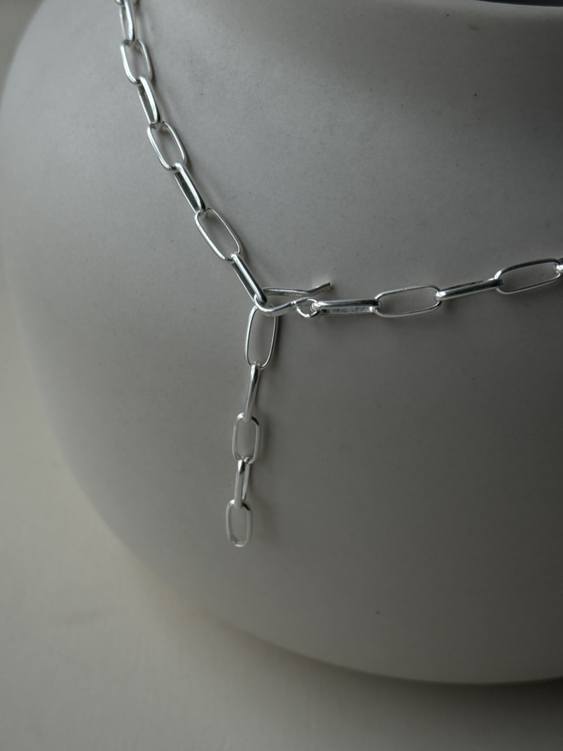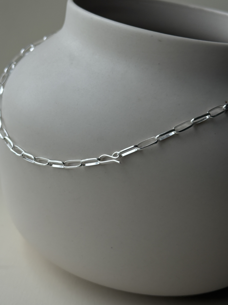 カジュアルな装いからきれいめなスタイルまで幅広く取り入れやすく、日常使いにもおすすめのチェーンネックレスです。