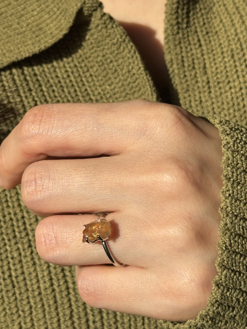 シルバー925×天然インペリアルトパーズのラフカットリング。