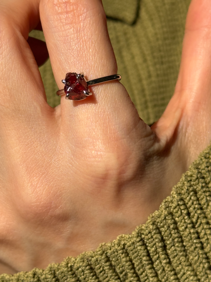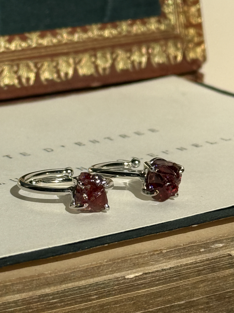 シルバー925×天然ガーネットのラフカットリング。ガーネットは1月の誕生石です。