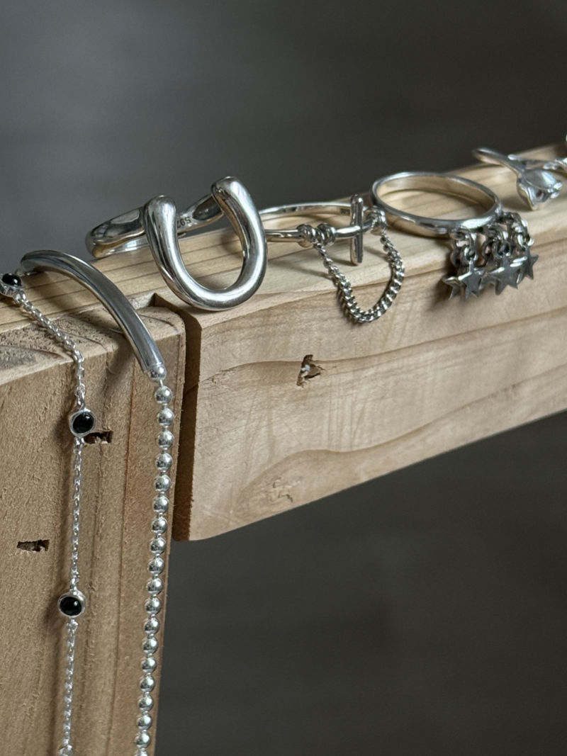 Silver925(シルバー925)は、銀の純度が92.5%の素材を指します。残りの7.5%には銅などの金属を加えることで、柔らかい純銀に強度を持たせ、アクセサリーとして扱いやすくしています。